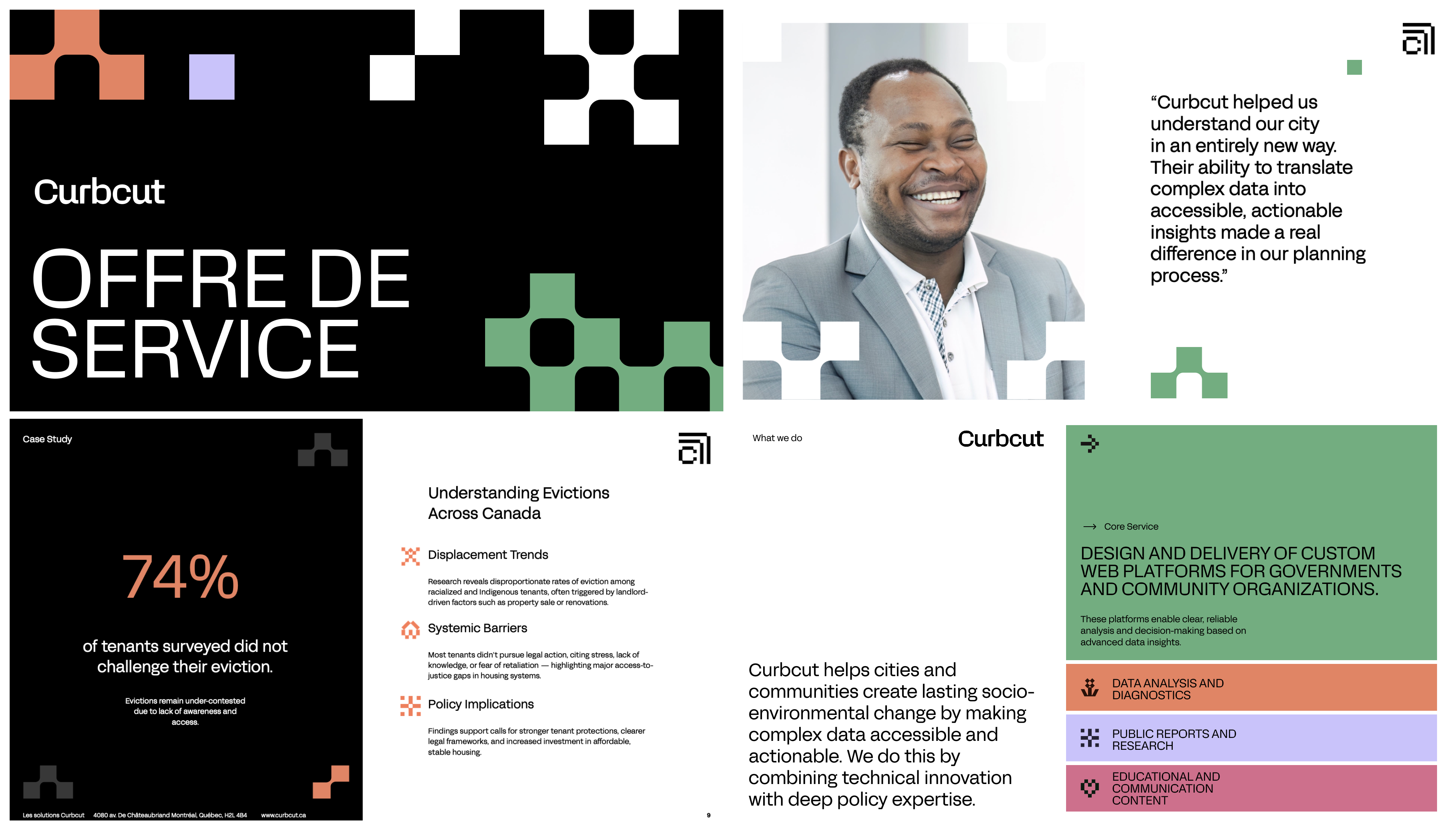 I redesigned Curbcut’s offer-of-services deck, turning dense internal documents into a modular, sales-ready system.