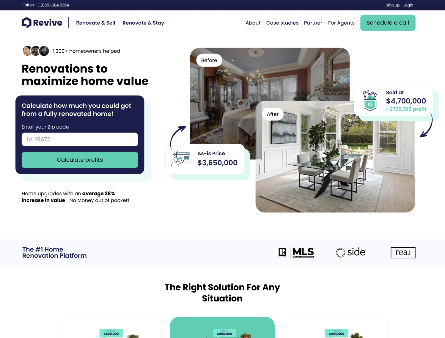 This homepage redesign for Revive Real Estate focused on making their value proposition immediately clear to homeowners considering a renovation. The goal was to reduce friction in the first few seconds of the experience by clarifying what Revive does, who it’s for, and why it matters—so visitors can quickly understand the benefit and feel confident taking the next step.